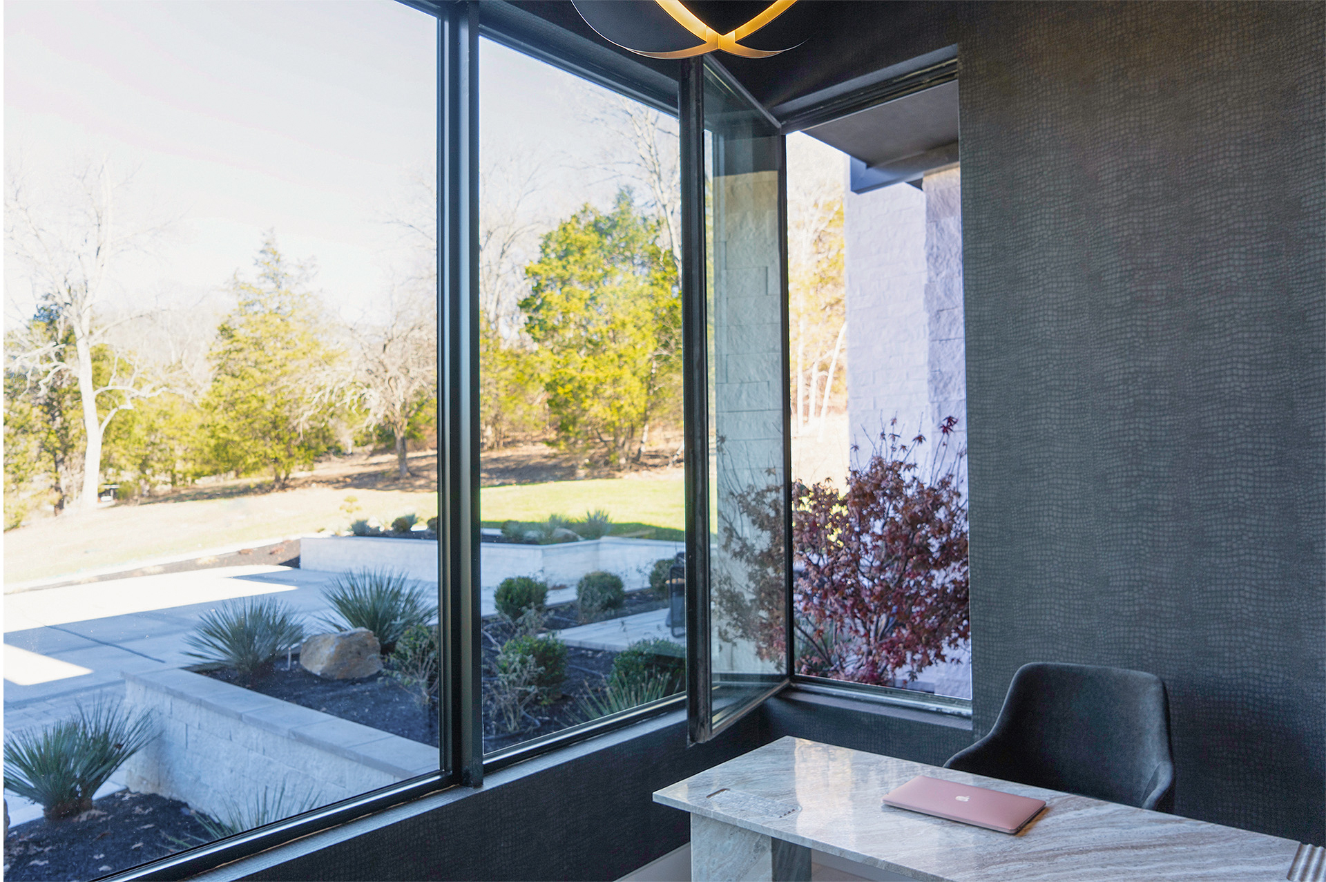 Embracing the essence of modern living, this spacious custom home just south of Nashville combines minimalism with function for an experiential aesthetic. With massive, operable glass windows and doors, Derrick Morgan’s vision manifest beckons gatherings that effortlessly flow from the open-floor interior to the inviting outdoor oasis.