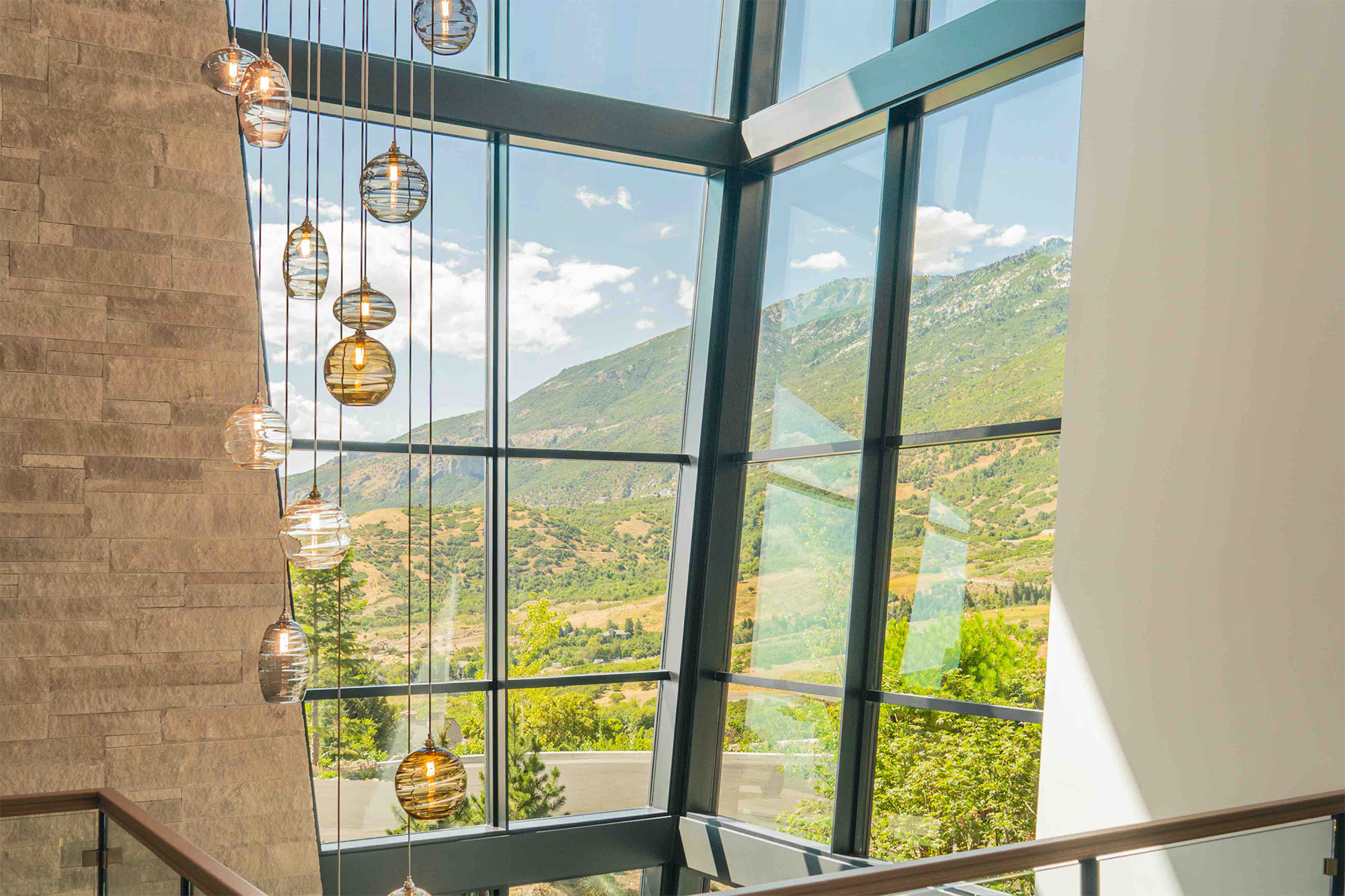 Nestled high in the foothills of Alpine, UT, Evergreen Summit boasts a peerless fusion of geography, design, and engineering. Shaped walls of glass lean over the Utah Valley for panoramic views connecting Utah Lake to Lone Peak. Throughout the home, colors and textures borrowed from the mountains create a seamless experience between indoor and outdoor spaces.